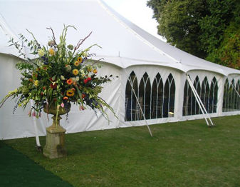 Our Poled Marquees are possibly the most up-to-date and certainly amongst the prettiest tents on the market. With their attractive and elegant "swoop tensioned" roof shape, these American-designed and manufactured tents have greater height than any Framed Marquee and are less expensive to hire. They also don't require large vehicles to transport them, making access to a site easier.